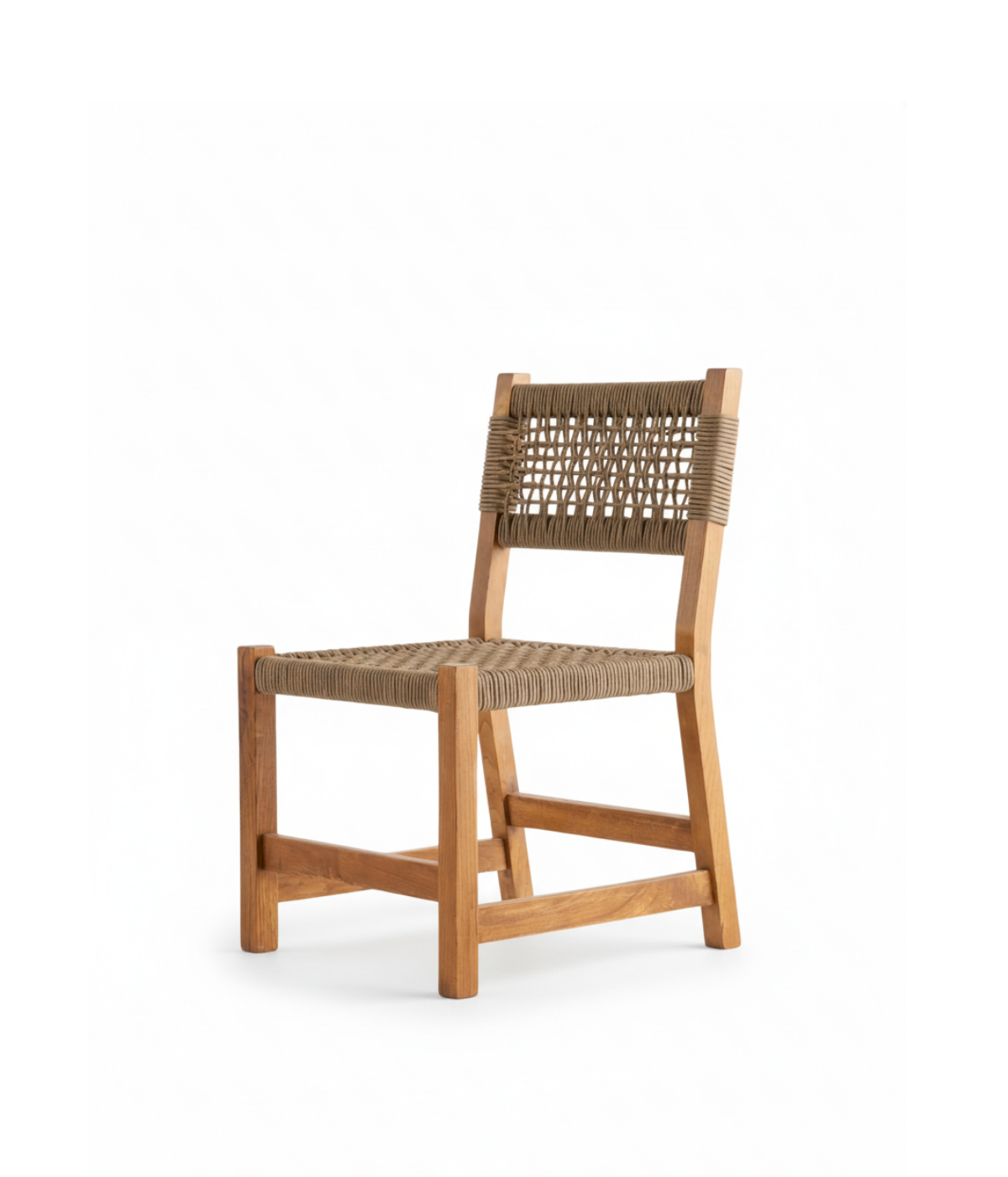 Maya Kollu Ahşap Sandalye | El Dokuması Doğal Jüt Halatlı Tasarım