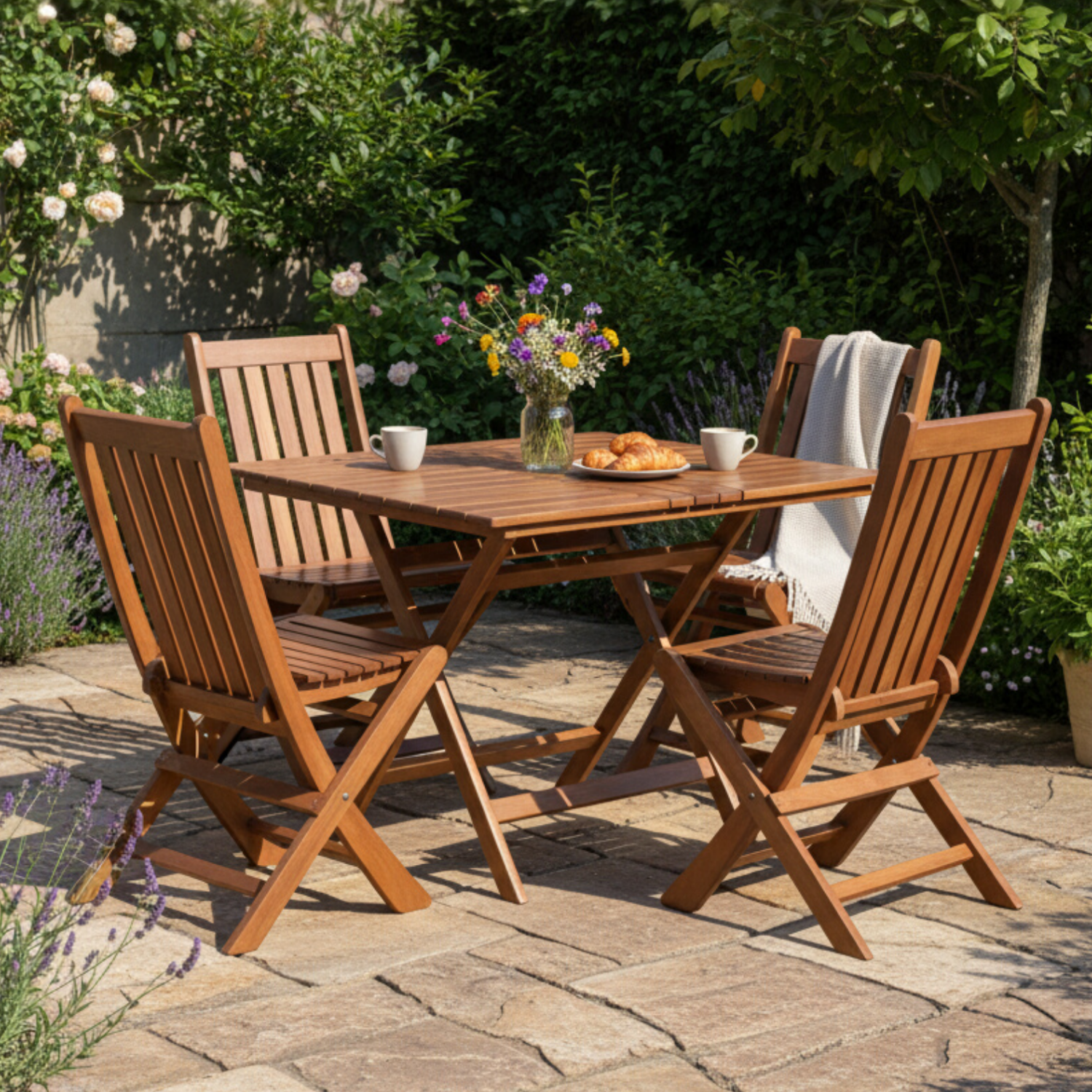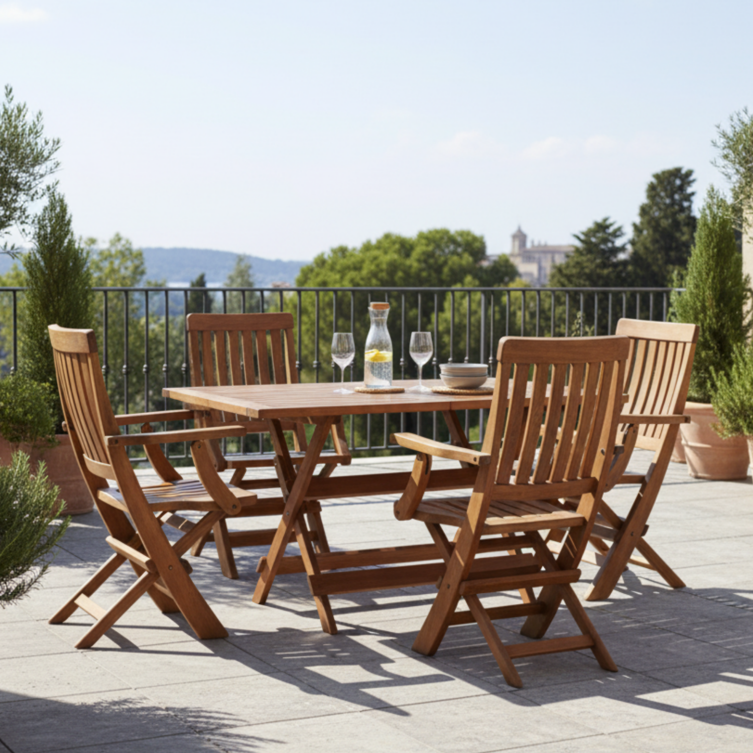 Atina 4'lü Dayanıklı Bahçe Seti | Gürgen Ahşap, Sabit Dış Mekan Masa Sandalye Seti