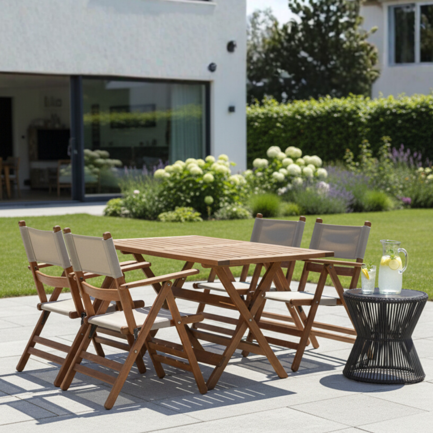 London 4'lü Ahşap Bahçe Masa Sandalye Seti | Gürgen Masa Sandalye Takımı