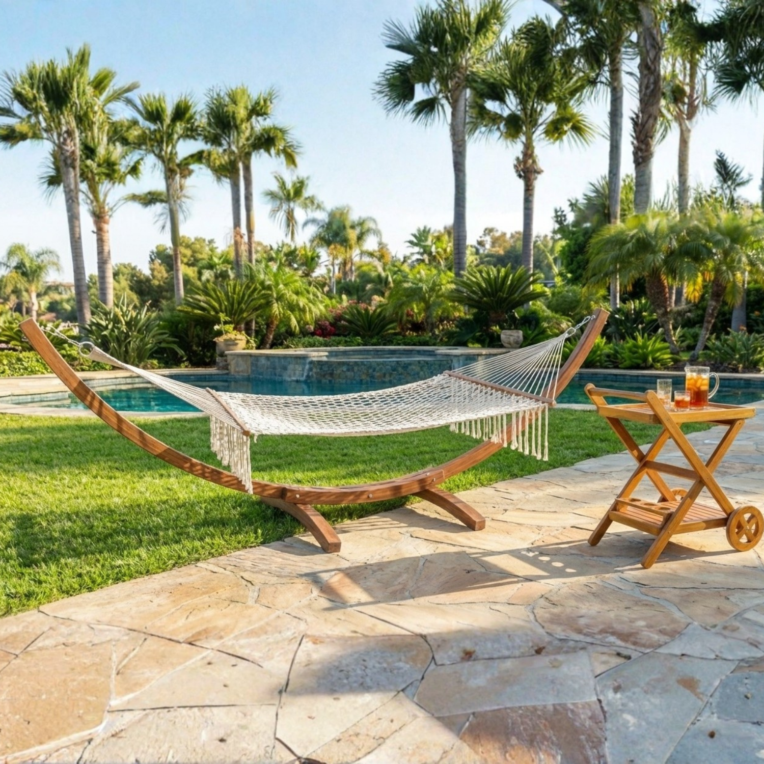 Gondol Ahşap Hamak | Fırınlanmış Çam, %100 Pamuk Kordon, Dış Mekan Dayanıklı