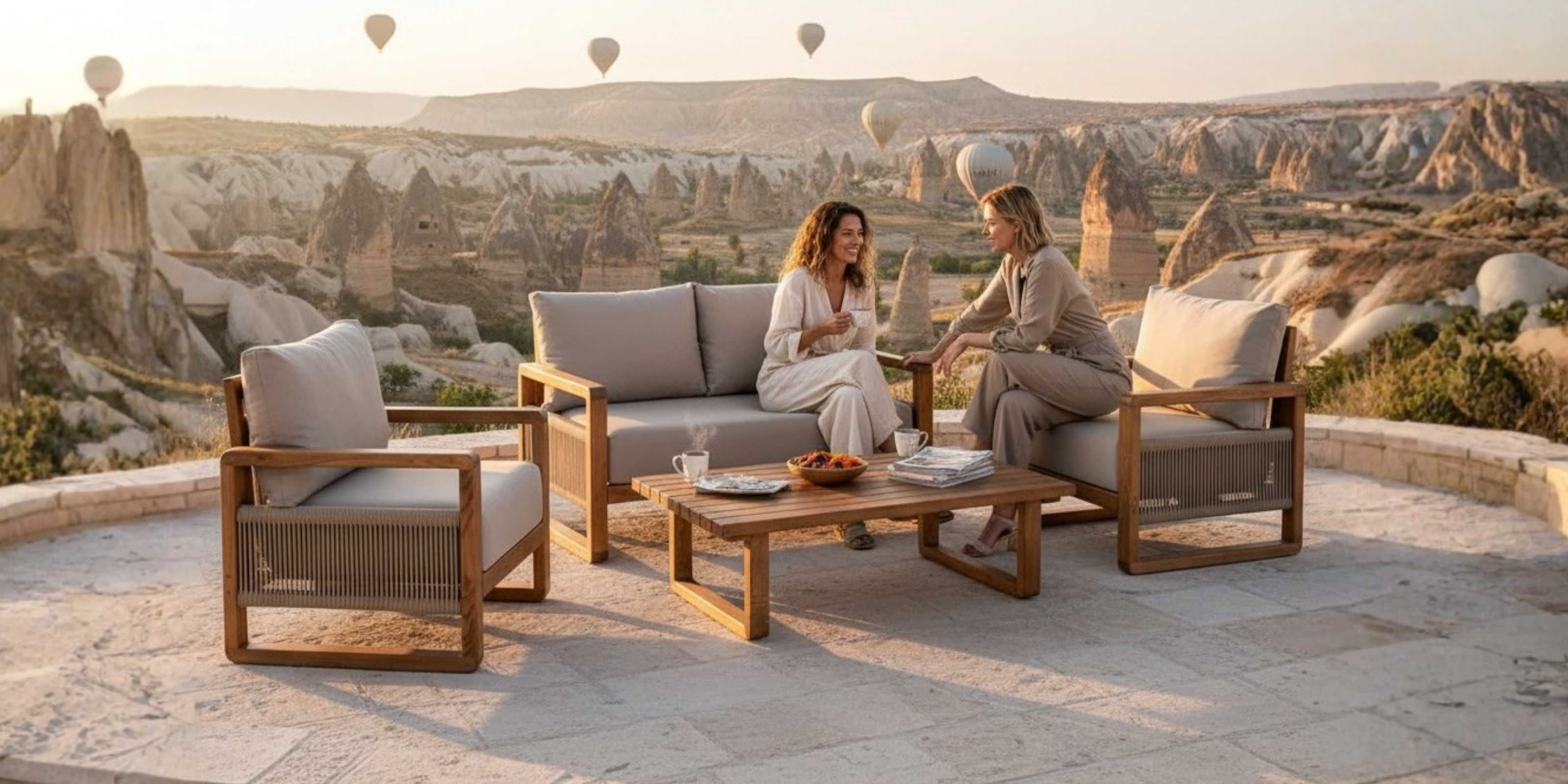 Su bazlı, sertifikalı yüzey korumalarıyla yağmura, neme ve güneşe karşı üstün direnç. Dört mevsim boyunca kalitesini koruyan premium dış mekân mobilyaları