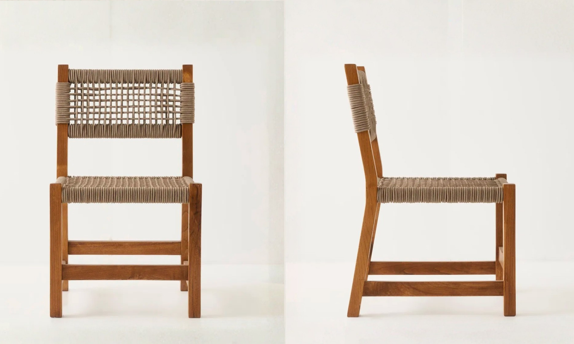 Maya Kollu Ahşap Sandalye | El Dokuması Doğal Jüt Halatlı Tasarım