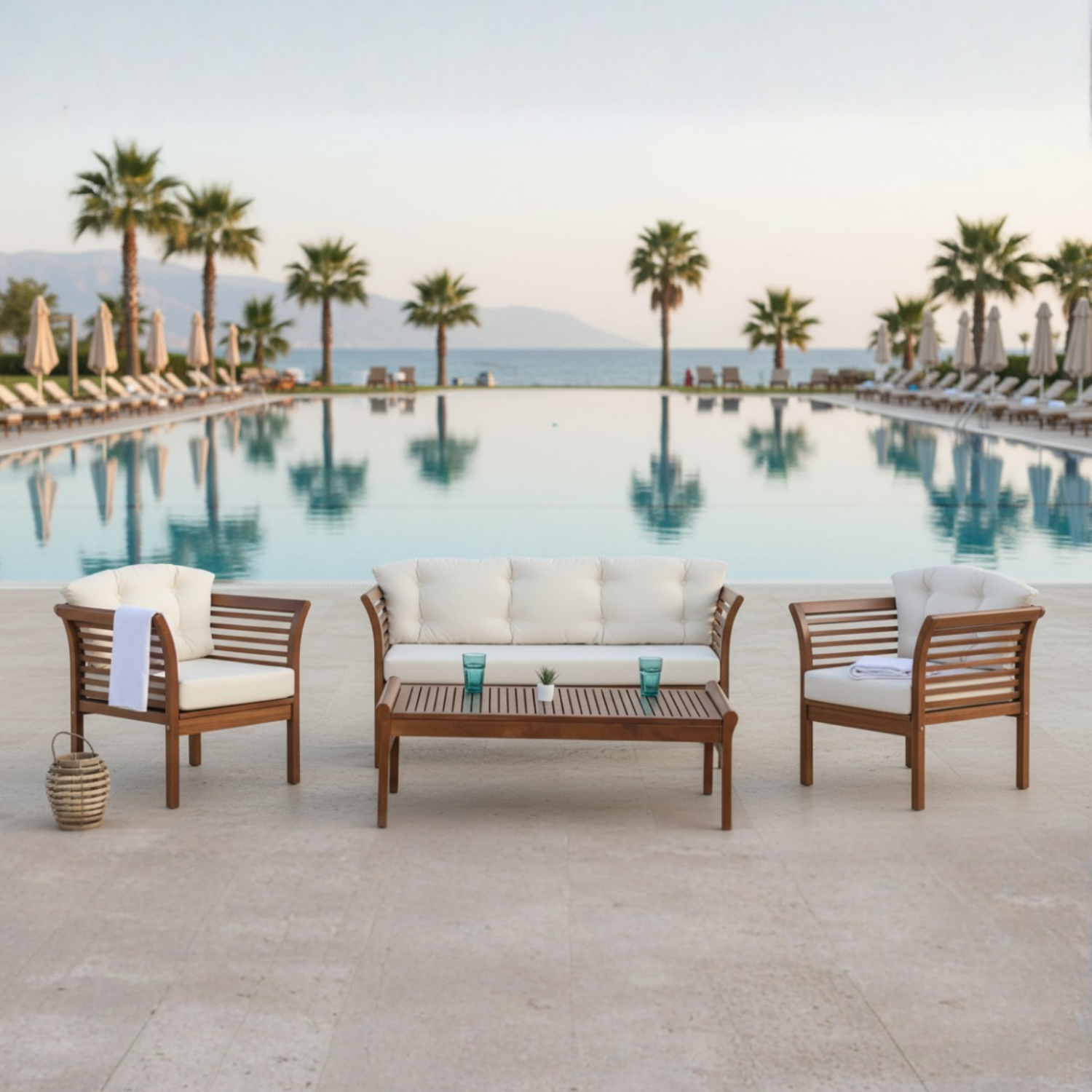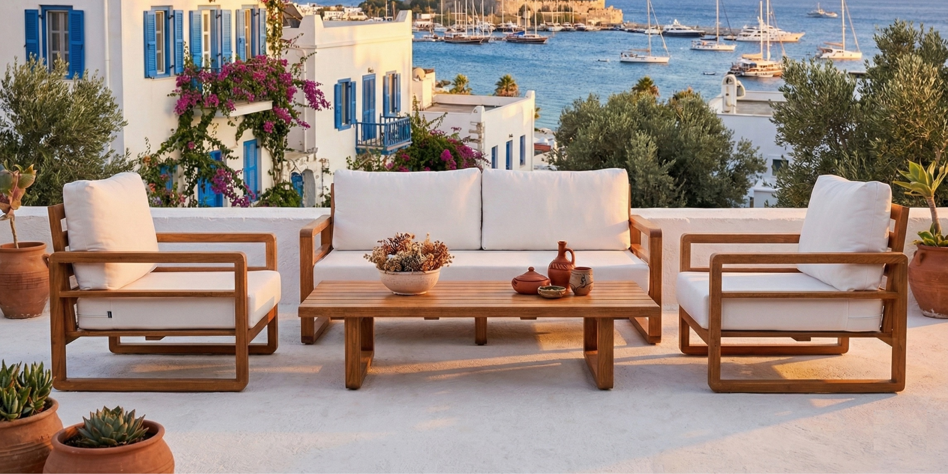 Mykonos Ahşap Oturma Seti